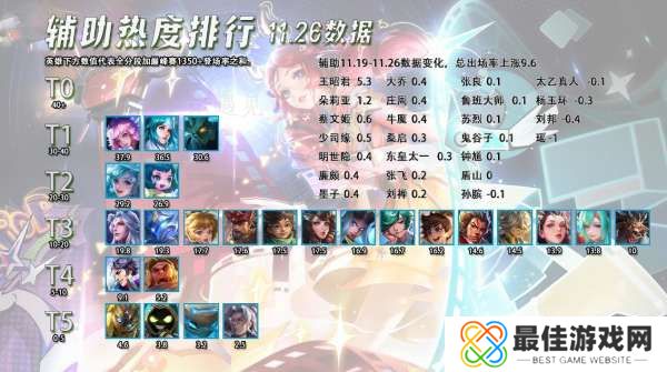 辅助热度排行:王昭君出场率开始反弹,辅助妲己数据突出