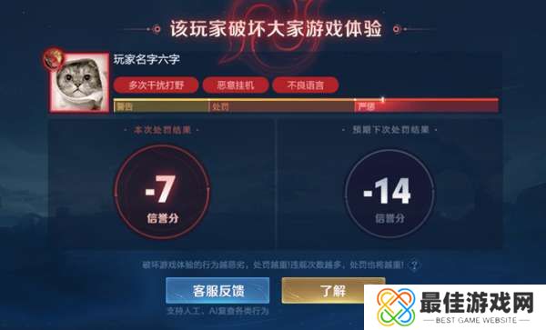 1、对无心之失而影响队友体验的玩家进行警告,从而提醒其更好地团结协作取得胜利。
