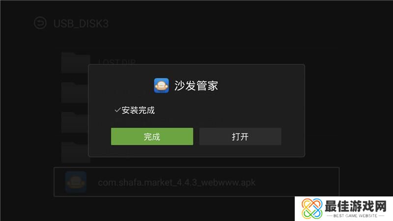 4、 开始安装,稍等片刻,即可安装成功安装完成,以后只需要通过沙发管家即可下载任意TV版应用,非常方便。