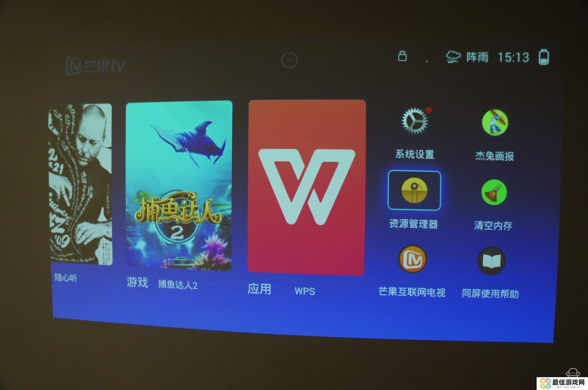 2、U盘连接到 极米投影仪,依次进入主界面→资源管理器→应用文件;