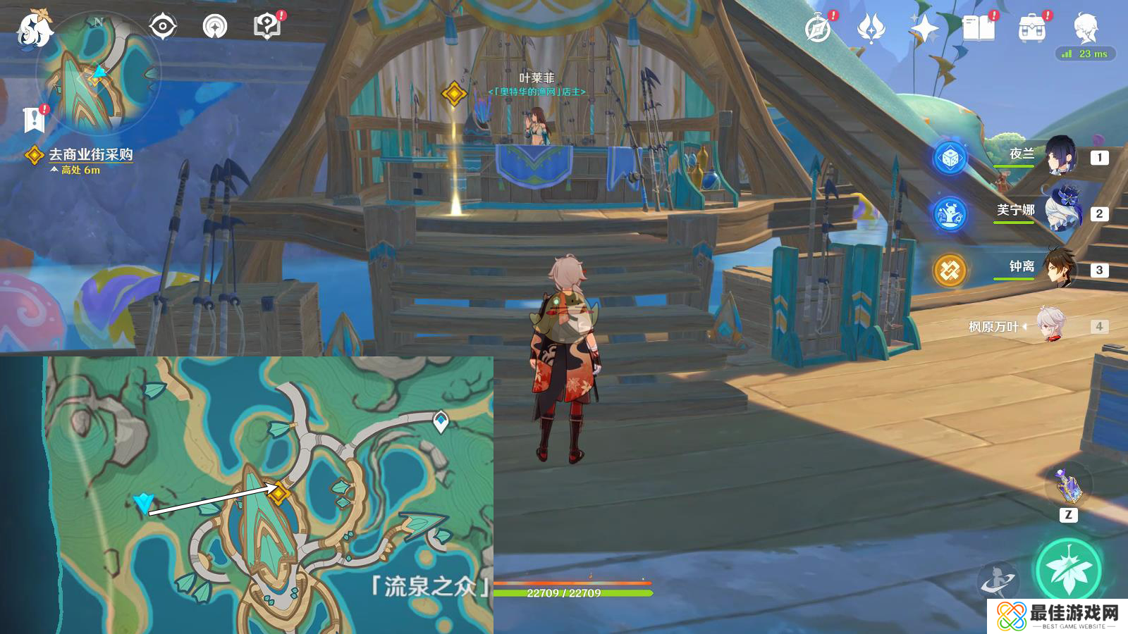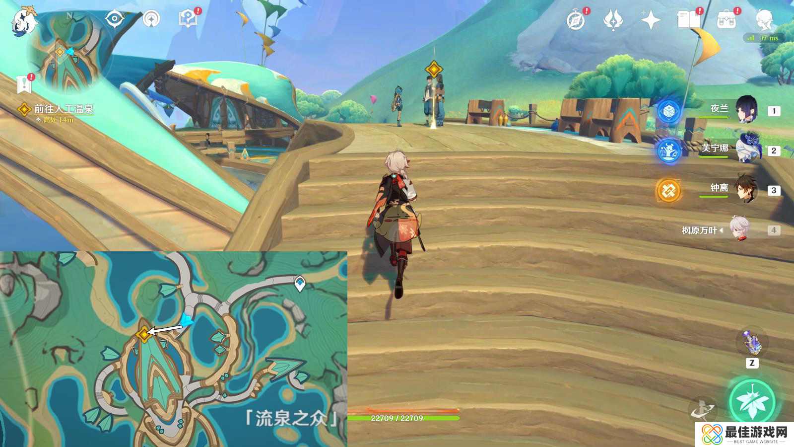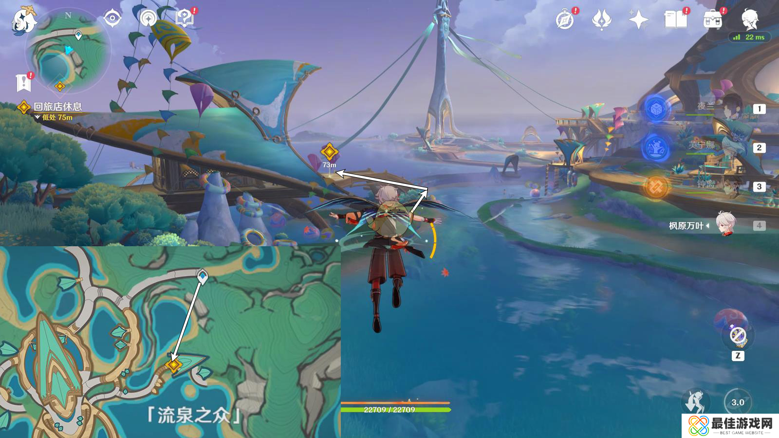 6.回旅店休息传送流泉之众北方向锚点,往地图的西南方向走,前往旅店门口