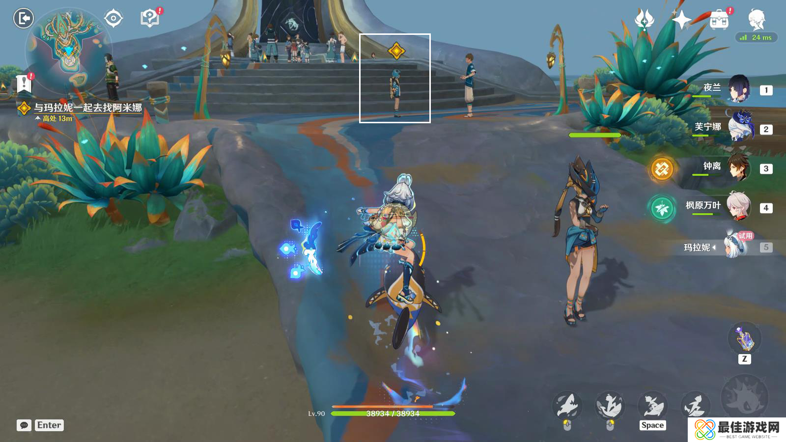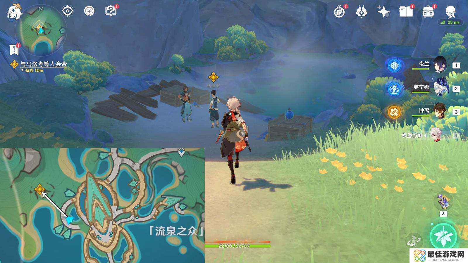 1.前往流泉之众按图中指引路线走,开启沿途的锚点和神像,与玛拉妮对话3分钟