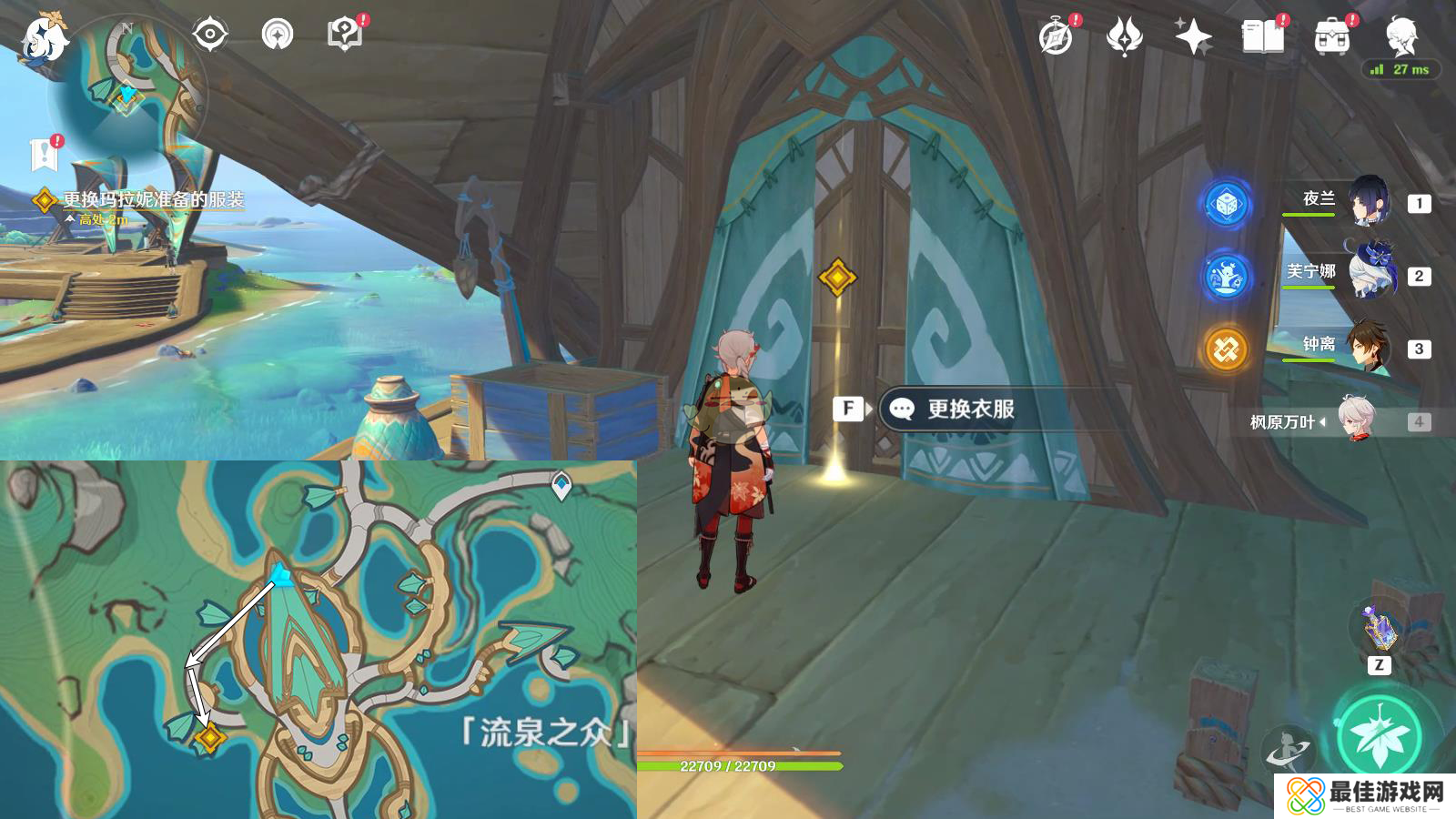 3.更换玛拉妮准备的服装前往指引房屋门口,交互更换衣服