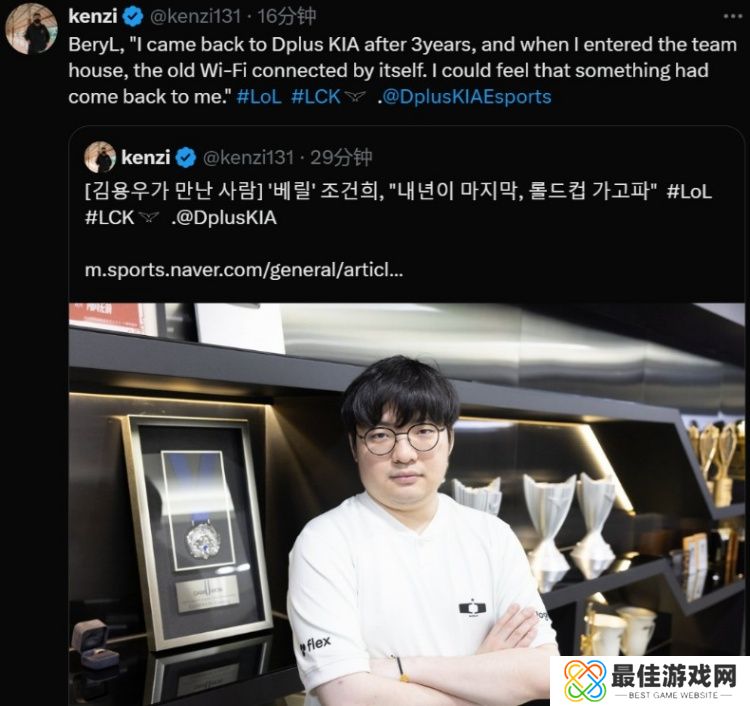 直播吧11月29日讯 BeryL选手在新赛季将于DK同行,BeryL在接受采访时说:“这是我时隔三年回到DK,当我走进宿舍时,我以前用过的Wi-Fi自动连接起来。那时我真正感觉自己回来了。