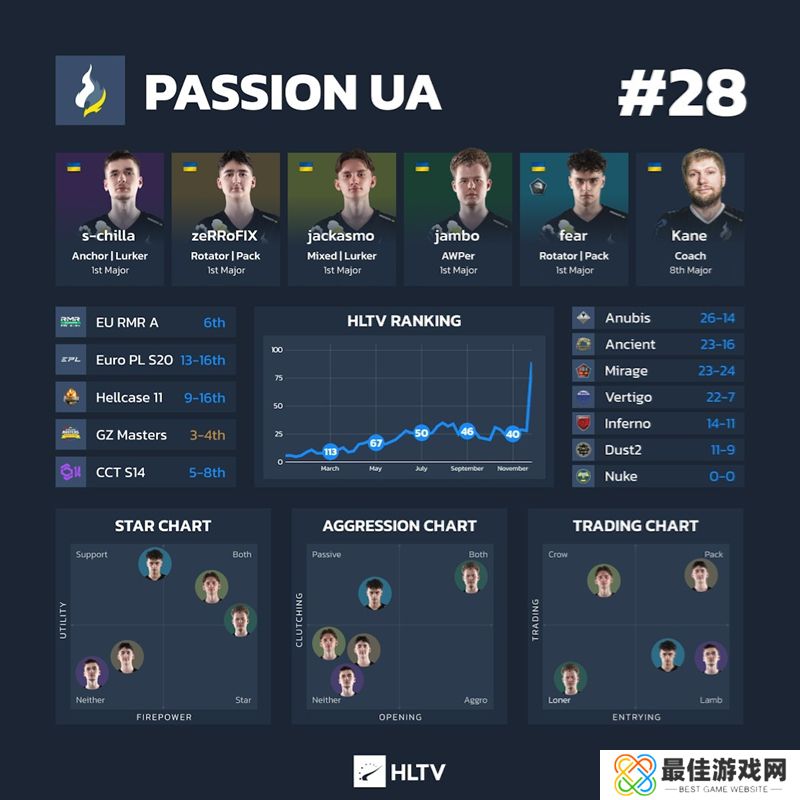 趣事:Passion UA是本次Major中最年轻的队伍,平均年龄为19.8岁,自今年2月签约以来,他们一直在进行一项被fear称为300天集训的活动,在波兰同吃同住,在短短的265天内打了362张地图。