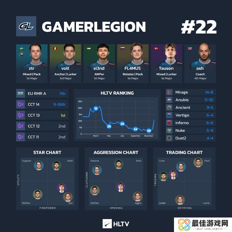 趣事:根据Skybox EDGE的数据,GamerLegion是 Major赛场上唯一一支采用真正七张地图池的队伍。