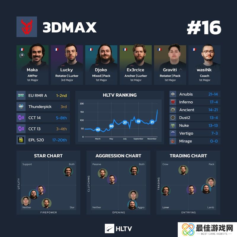 趣事:自2021年斯德哥尔摩Major的Vitality战队以来,3DMAX是首次以全法国阵容参加Major的战队。