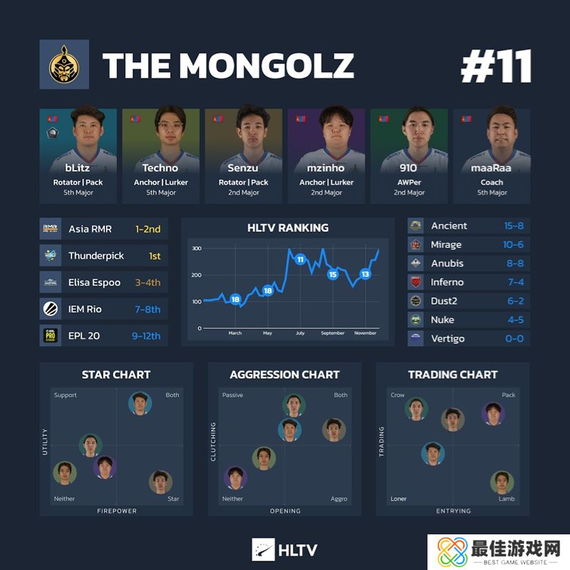 趣事:Complexity是Major队伍中阵容最稳定的战队,他们在527天前签下了EliGE。蒙古队排名第二,为510天。