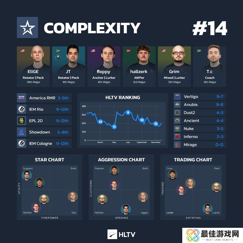 数据:尽管Vertigo是职业队最喜欢ban掉的地图,但在50%的系列赛中,Complexity都将首选Vertigo。