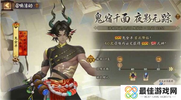 最后:以上就是本站小编为你收集的阴阳师鬼金羊专属召唤活动上线时间什么时候,希望能帮助到小伙伴们,更多相关的文章请关注本站。