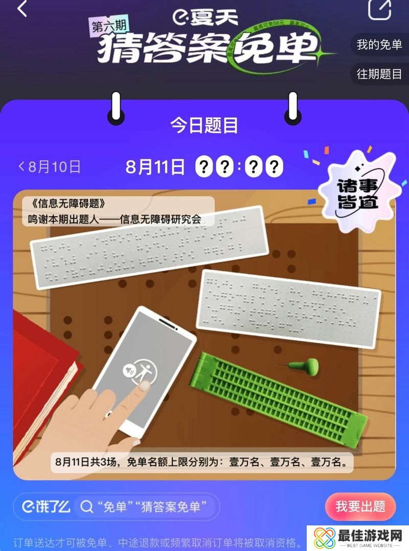 饿了么免单8.11正确答案一览,在8月11日的饿了么免单答案中,今天的免单问题以信息无障碍为主,小编已经为用户们整理好饿了么免单8.11的正确答案了,下面一起来看看吧。