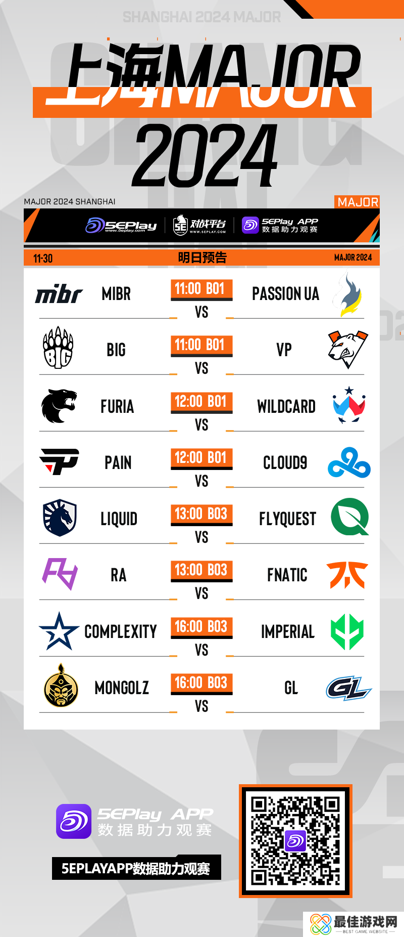 上海Major开幕阶段第一日比赛已经结束,在第一日的两轮BO1中,FlyQuest化身黑马拿下两连胜,晋级2-0组,同样2-0组的还有GamerLegion、Liquid、The MongolZ。中国