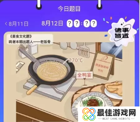 饿了么免单8 12答案已经为用户们整理好了,这一次题目和美食有关,小伙伴们对于对美食全鸭宴有多少了解呢,想更快速度获取饿了么免单8 12的正确答案,下面和小编一起来看看吧。饿了么免单8 12答案一览题
