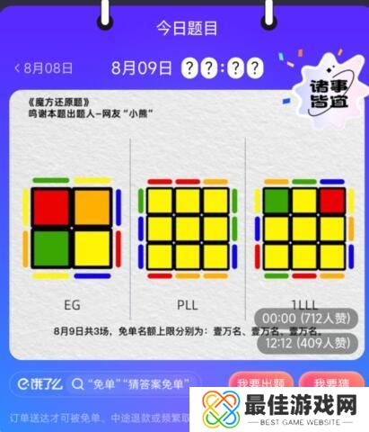 场次8月9日共3场,免单名额上限分别为壹万名、壹万名、壹万名