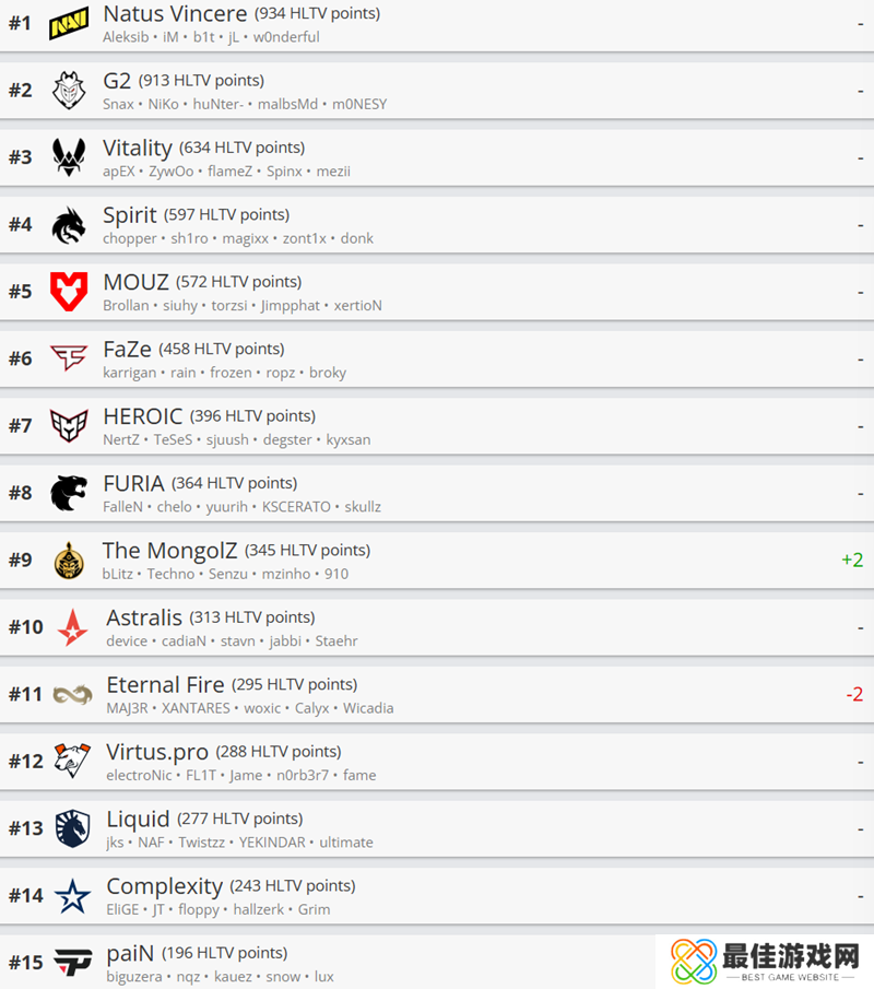 一起看看最新一期的HLTV世界排名吧。今天HLTV发布了最新一期世界排名,鉴于上海Major 开幕战阶段仍在进行当中,因此预计这份排名在下周还会迎来巨变。1-10名中唯一的变动出现在The Mongo