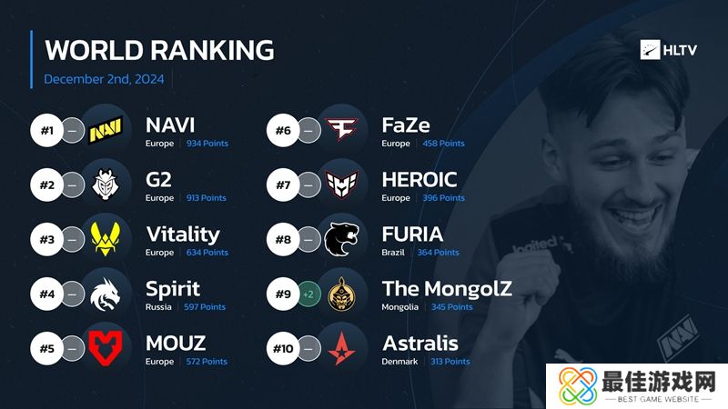 HLTV本周世界排名:蒙古重回前十,RA进步20名