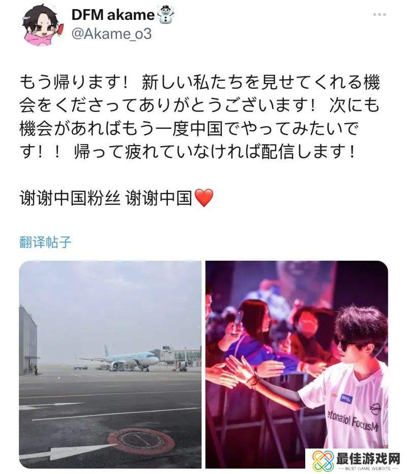 在无畏契约源能亚洲邀请赛决赛中,DFM以1-3的比分不敌PRX。DFM战队于今日回国,Akame选手发文: