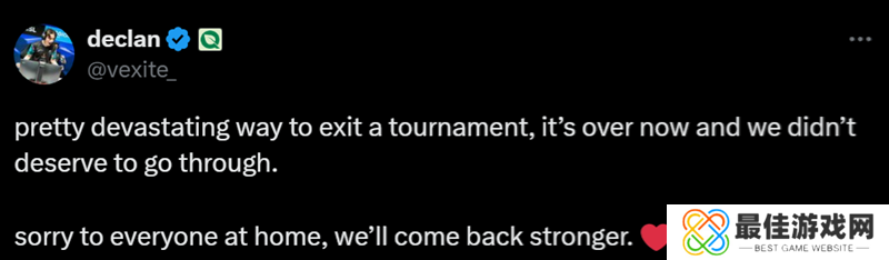 Vexite:真是以颇为沮丧的方式退出了赛事,现在比赛已经结束,我们不配晋级。