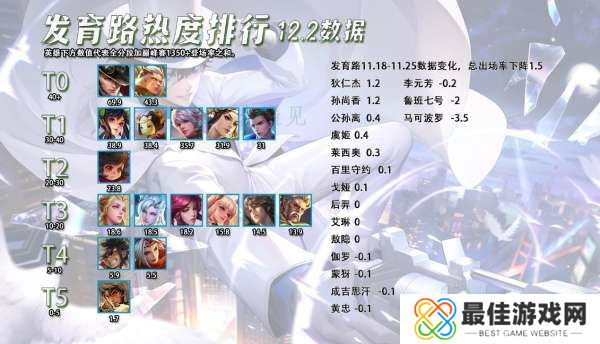 五路的热度排行可能后续每个星期做一遍,让大家时刻能够感受到版本的变化,然后再结合上一个星期的数据给出一个数据变化具体数值。