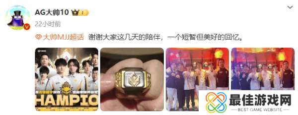 大帅晒军团杯戒指:谢谢大家陪伴,一个短暂但美好的回忆!
