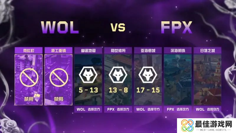 2024 FGC无畏契约邀请赛第九日:败者组决赛BO5,WOL再战FPX,二番战WOL直落三图横扫FPX,其中图三亚海悬城,WOL苦战四个加时最终惊险胜出,拒绝对手翻盘与夜长梦多,成功挺进总决赛再战BLG。