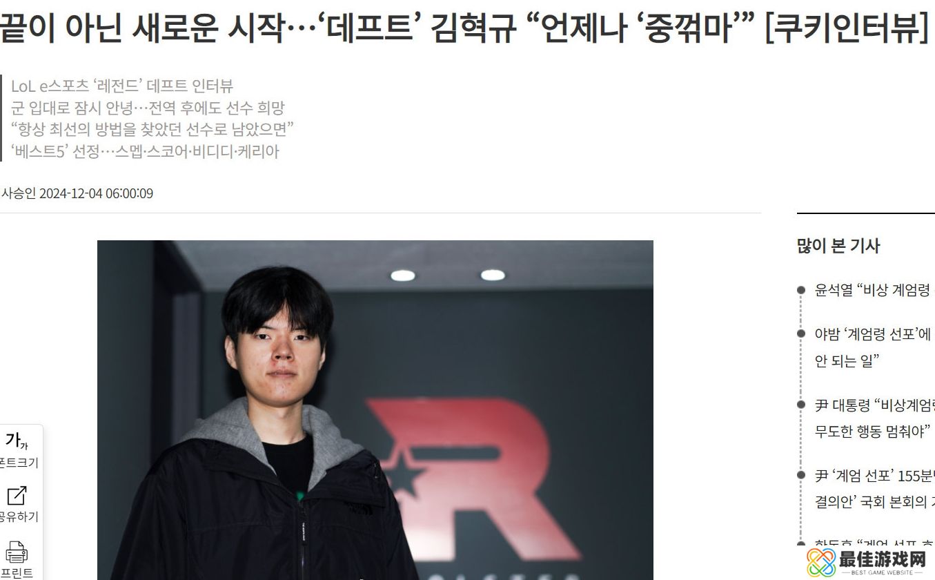 直播吧12月4日讯近日韩媒kukinews采访了前KT下路选手Deft,Deft将在未来服一年半的兵役。Deft透露自己结束兵役后的未来。英雄联盟电竞史的见证者,与Faker李相赫并列为最佳选手的De