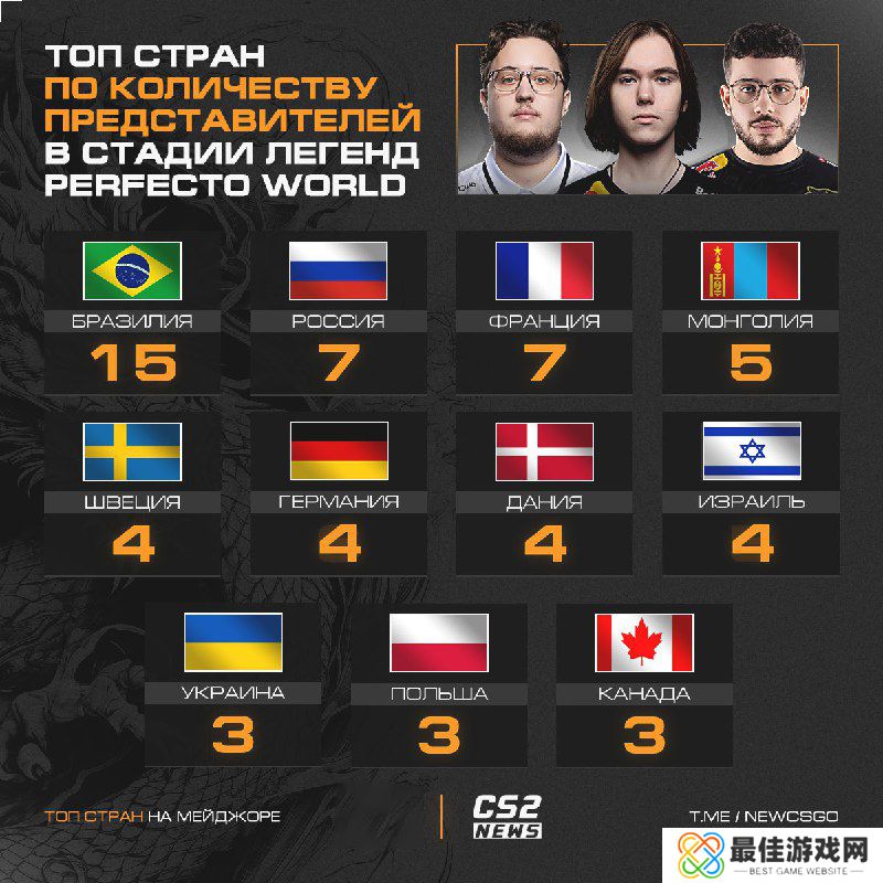 以下为上海Major正赛阶段各国职业选手人数排行榜: