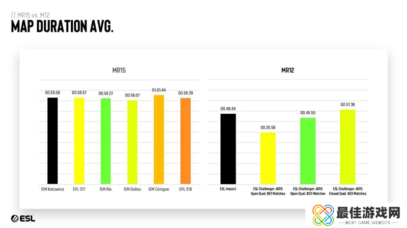 采用MR12赛制后,CS新版本的比赛从每半场15回合改为每半场12回合,有效缩短了比赛时间。这一调整解决了对BO5决赛的主要批评之一:它们往往过于冗长,需要选手和观众长时间保持注意力集中。现在,MR12系统下的BO5比赛长度接近于旧MR15系统下的BO3比赛长度,提供了相同的娱乐价值,而无需花费更多时间。