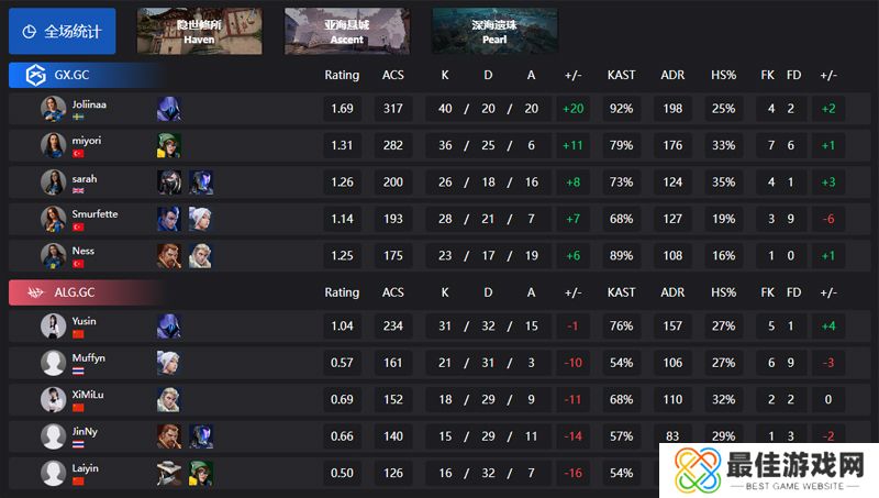 图一隐世修所,GX 13:10 ALG,图二亚海悬城,GX 13:1 ALG。来自土耳其的miyori选手,拿到了全场最高的40总击杀。