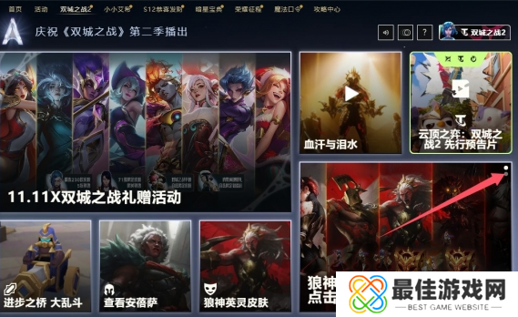 4、首先我们登陆客户端在首页进入双城之战2分页右下角的第二个圆点。