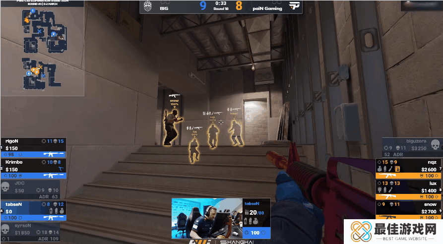 tabseN的这个绕后极有可能改变局势。在昨天上海Major正赛阶段BIG对阵paiN的回家局中,tabseN本人感受到了线下“带刺的魅力”。在第18回合中,tabseN选择绕后,在他面前的是paiN