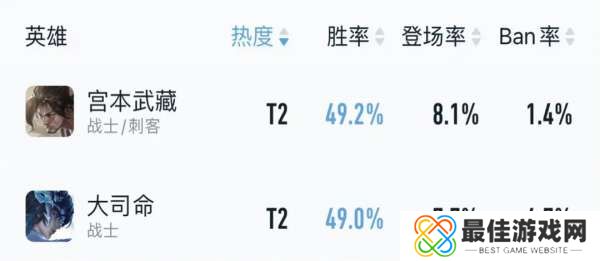 比如大司命和宫本武藏近期巅峰赛胜率只有49%左右,上赛季还是非BAN必抢的大司命,如今禁用率仅剩下4.7%。