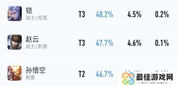 第三和第四梯队都是机制比较落后的老英雄,其中人气比较高的孙悟空、赵云和铠,本赛季巅峰赛胜率都已经跌到谷底。