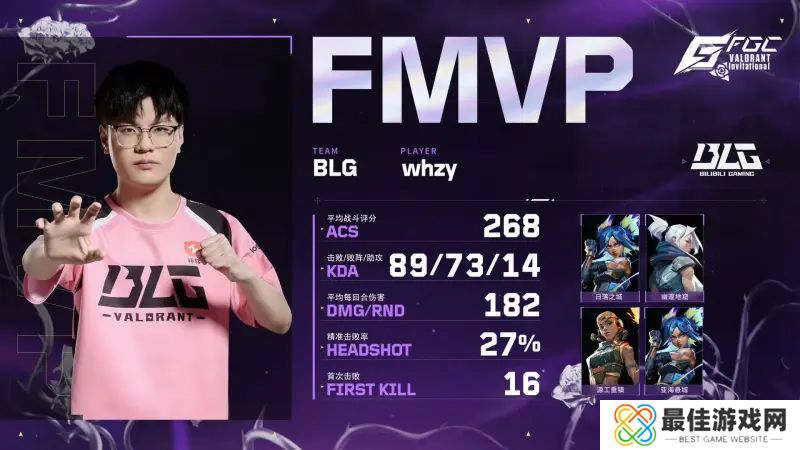 在2024年FGC邀请赛决赛中,BLG以3-1的比分战胜WOL夺得冠军,明星选手王昊哲whzy凭借出色表现拿到FMVP。