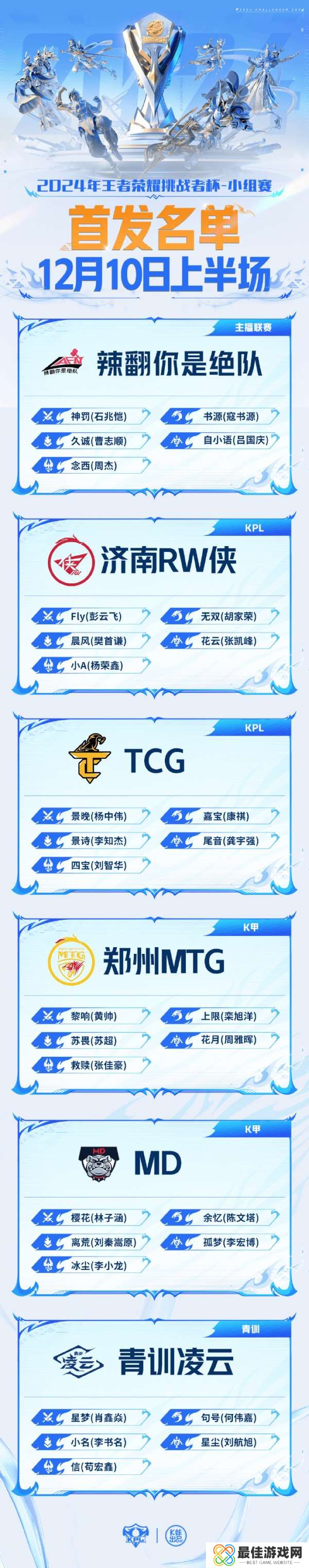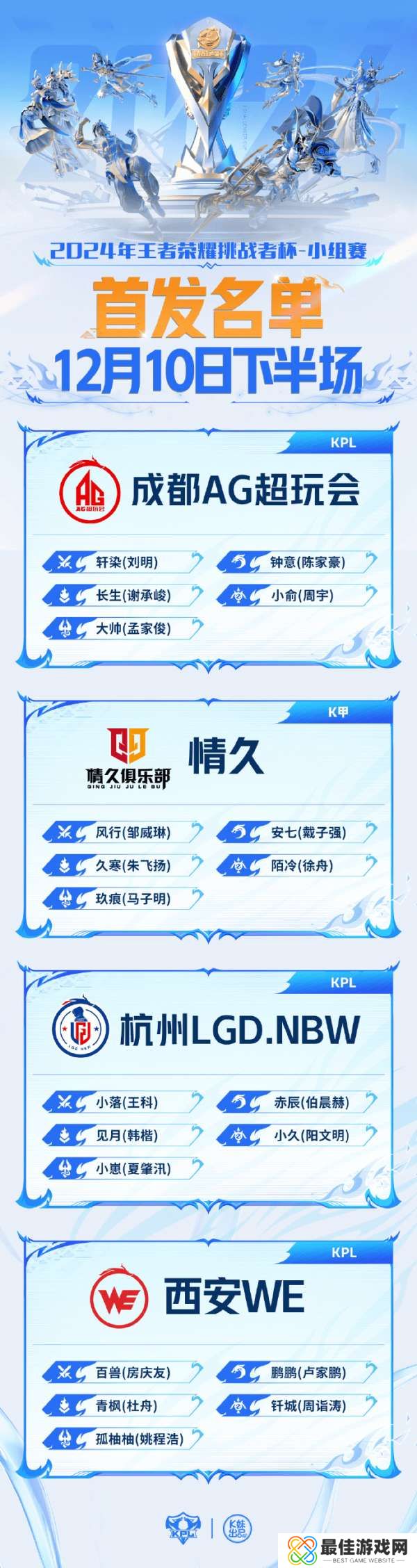 2024年王者荣耀挑战者杯 小组赛W1D4【首发名单】送达 !