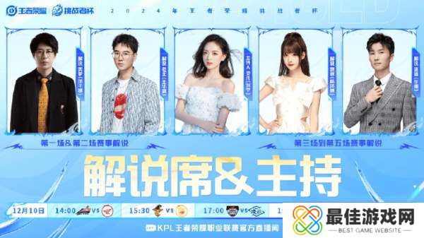 解说席&主持人:解说美梦 (闵子端)、解说老王ww (王华斌)、灵儿chili (刘宁)、解说琪琪 (杨泽琪)、解说潇洒洒 (李潮)