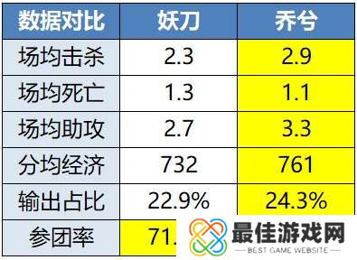 妖刀在上一场对阵杭州LGD.NBW的比赛里可以说几乎用不着发力,获胜的四局用时都只有十来分钟,跟着队友推推塔就行。擂台赛阶段本就不高的数据,再遇上这种队友带飞局,本就排名发育路倒数第一的输出占比进一步降到22.9%。