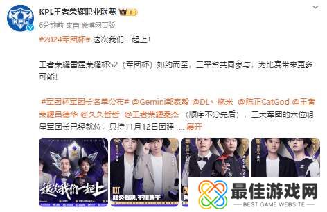 虎扑11月05日讯 KPL官宣军团杯:吕德华 Cat 久哲等任军团长,总奖金250万元原文如下:2024军团杯 这次我们一起上!王者荣耀雷霆荣耀杯S2(军团杯)如约而至,三平台共同参与,为比赛带来更多
