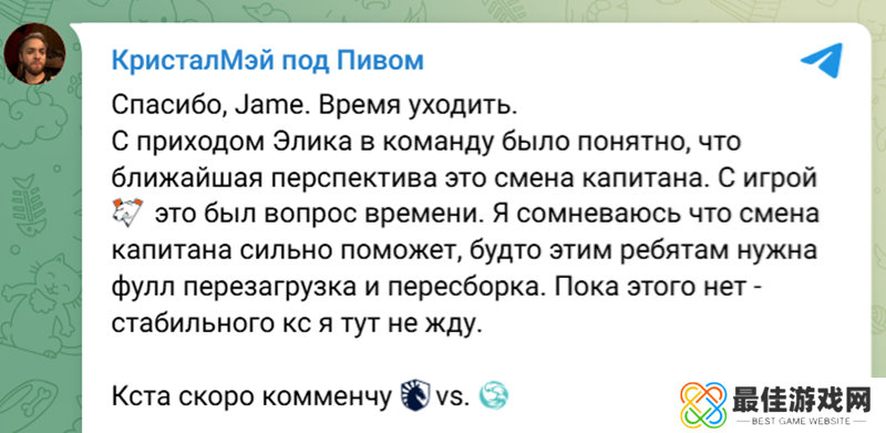 当我观看VP在这次Major上的比赛时,很明显,electroNic在个人发挥中严重失利。总的来说,VP的比赛非常薄弱。这里的问题是——谁该为此负责?是Jame需要被下放? 还是整个队伍都有责任?原因何在? 只有时间才能告诉我们。因为当我被NAVI下放时,你还记得他们的实力有所下降。他们带来了实力超强的选手s1mple,但却没有处理好。因为(很难)找到合适可以提出战术和各种话题的指挥。而Jame,我知道至少在之前,他在学习比赛、建设等方面做了很多工作。 这种风格很特别,很多人都不喜欢,但它取得了成果,这是事实。因此现在让我们来看看它的发展方向。