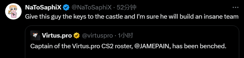 Virtus.pro战队宣布正式下放Jame。
