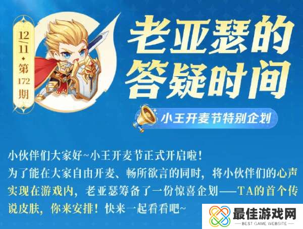 大家好我是指尖,小王开麦节的特别活动来了,12日活动开启玩家投票,在英雄池中选择一个英雄安排他们的第一个传说皮肤。