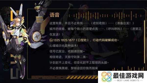 原版的语音台词是“1325,1825,1877,行动代码破解成功”。