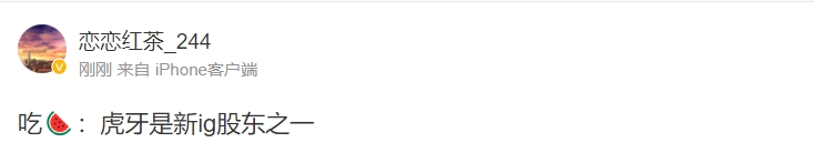 直播吧11月5日讯 今日LPL爆料人恋恋红茶在微博爆料称,虎牙直播或将成为iG战队的新股东之一,看来这个赛季大动作即将上演,拭目以待!