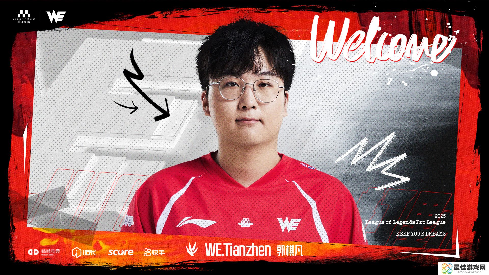 经过双方友好协商,我们非常高兴地向大家宣布,即日起,Tianzhen(郭棋凡)正式加入西安曲江WE电子竞技俱乐部,担任英雄联盟分部打野位置选手。