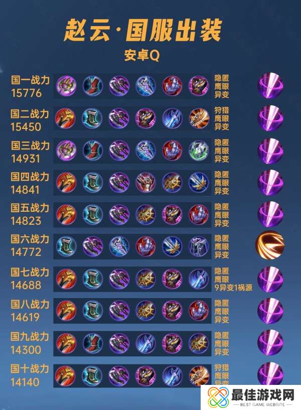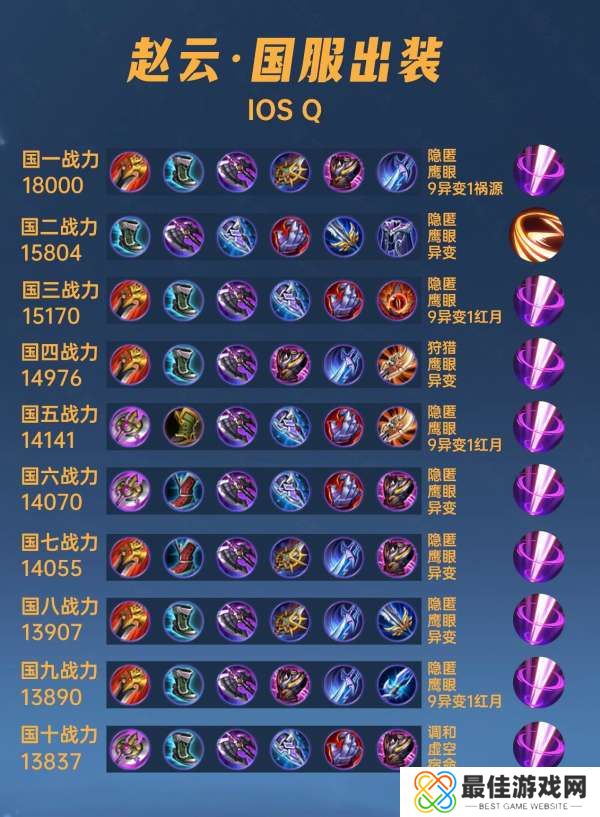 这篇文章我们来看一下40位国服赵云的出装铭文,没有想到一个这么冷门的英雄,出装这么杂乱,基本上每个人一个路子。