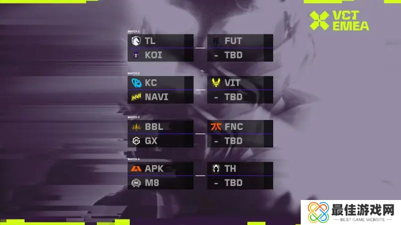 2025 VCT EMEA联赛官方账号更新了2025赛季启点赛赛程。其中,参加世界赛的四支队伍:FNC、VIT、TH、FUT率先晋级第二轮。
