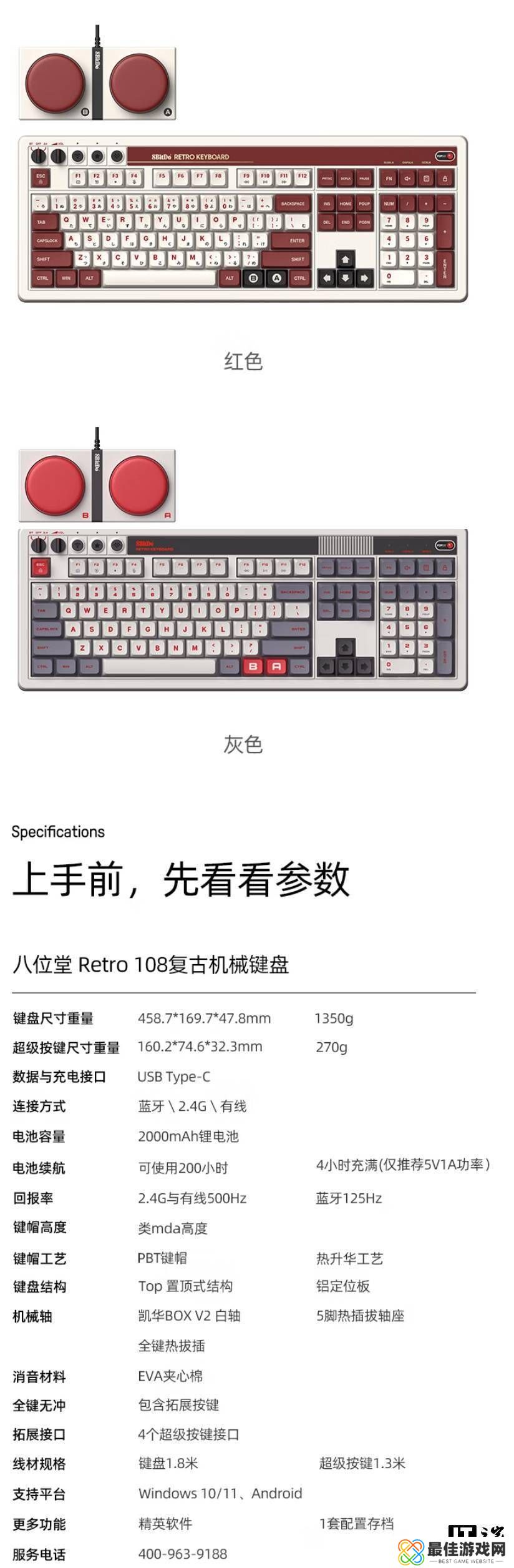以下是八位堂Retro108机械键盘的详细参数信息,供用户参考: