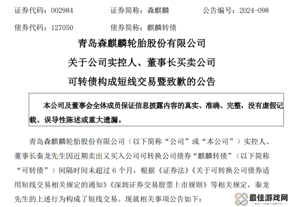 在这样的背景下,秦龙个人也遭遇了严重的打击。据森麒麟公告,秦龙在今年4月卖出了其持有的部分“麒麟转债”,并在7月基于对公司未来发展前景的信心,买入了更多的公司可转债。然而,由于其卖出和买入行为的时间间隔未超过6个月,根据相关规定,被判定为短线交易。