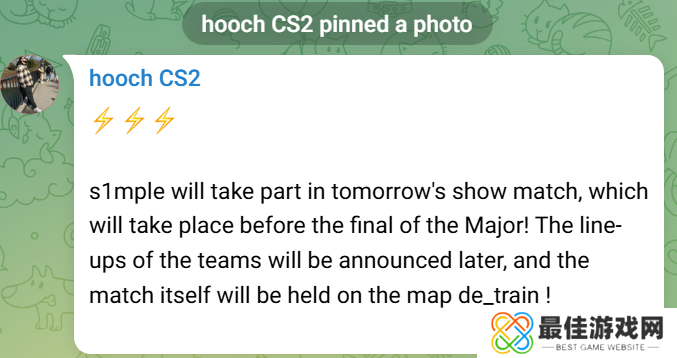 不过刚才hooch又表示s1mple将会参加明天的表演赛,而且他还分享了表演赛的地图,那就是社区预计Major后会加入竞技图池的de_Train。在这张地图上,s1mple也有很多名场面。