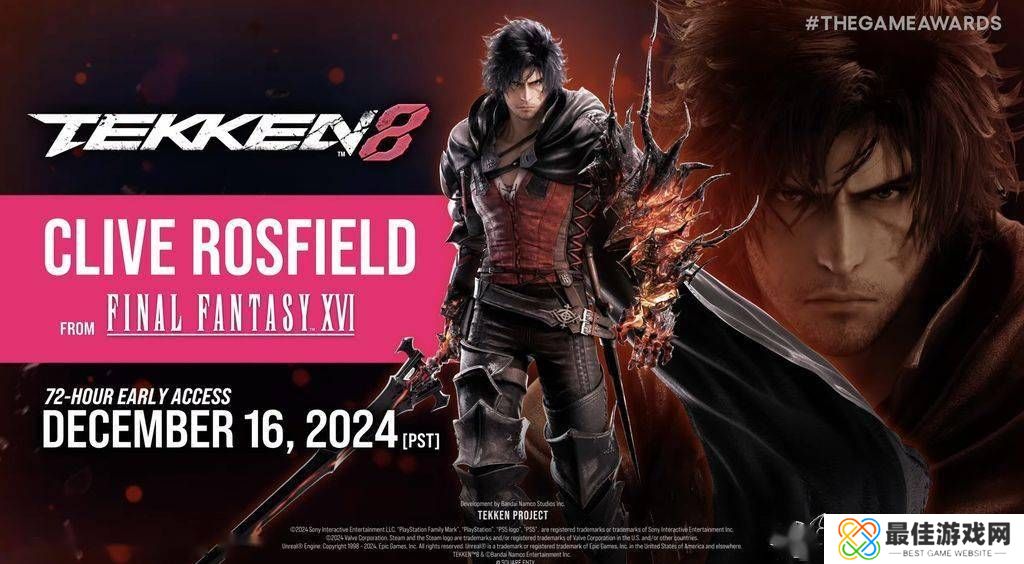 在万众瞩目的2024年TGA游戏大奖盛典上,万代南梦宫游戏公司揭晓了一个令人兴奋的消息:《铁拳8》第一赛季的最后一位DLC角色正式公布,他便是来自《最终幻想16》的克莱夫·罗兹菲尔德。这一消息不仅让《铁拳》系列的粉丝欢呼雀跃,也让《最终幻想》的拥趸们倍感惊喜。